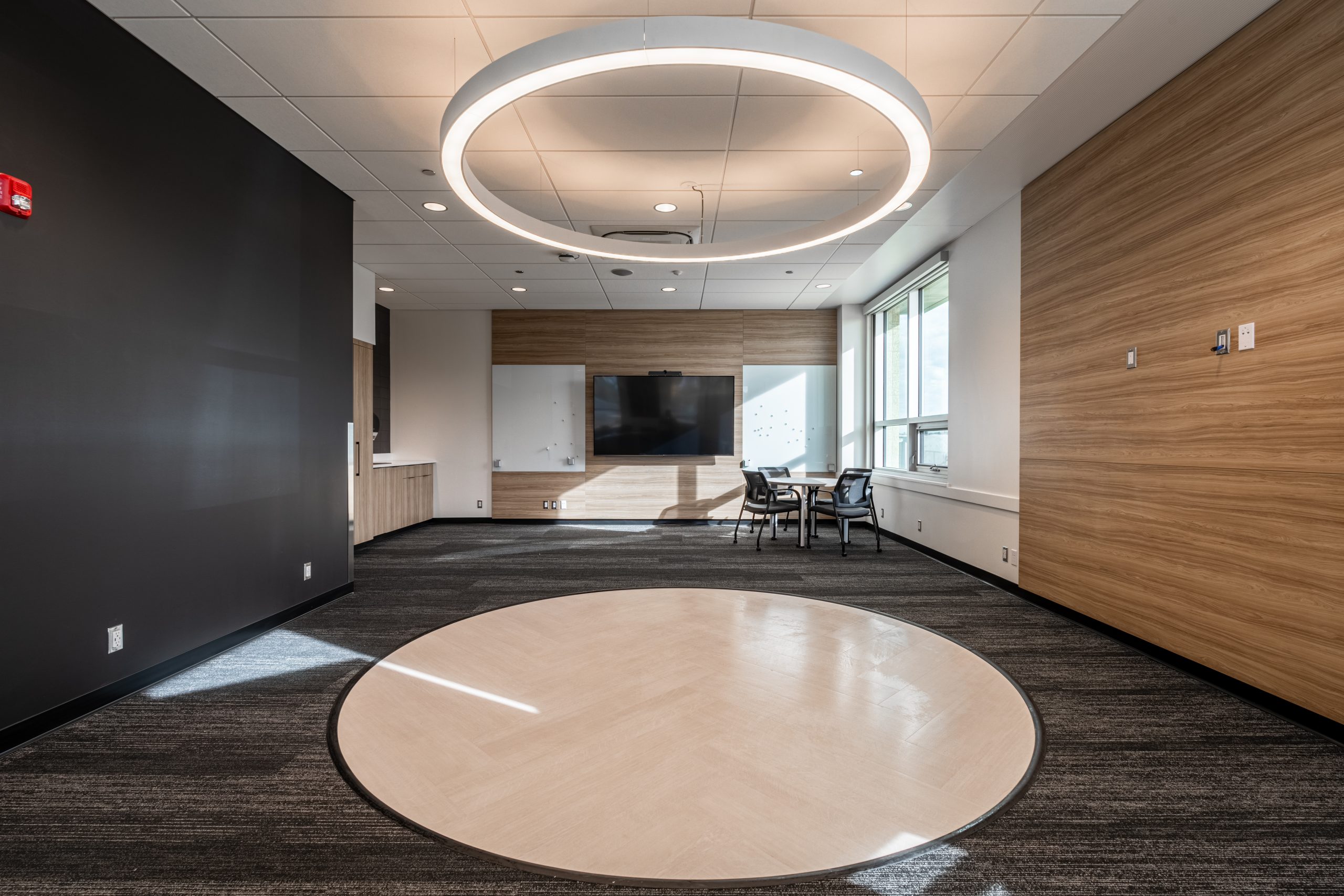The fire station’s design prioritizes functionality and efficiency. The apparatus floor can accommodate one pumper truck and one aerial ladder truck, with adjacent spaces like hose drying areas, workrooms, mask washing facilities, and turnout gear rooms for quick access. Key facilities such as EMS storage, staff showers, an air compressor room, emergency generator room, and electrical and mechanical rooms are conveniently located near the apparatus bay. The main floor houses an entry vestibule, main office, classroom (which can also serve as a community room), meeting room, washrooms, fitness room, and janitorial facilities, while the second floor includes living quarters (dorms, kitchens, lounges), captains’ and inspectors’ offices, storage rooms, janitor closets, and a common study area. Accessibility to the apparatus floor is enhanced with the inclusion of a fire pole and a direct path to an internal stairwell. Additionally, an outdoor patio off the kitchen provides space for outdoor dining and barbecues. The fire station has been designed to meet the criteria for LEED Certification, emphasizing sustainability and environmental considerations in its construction.