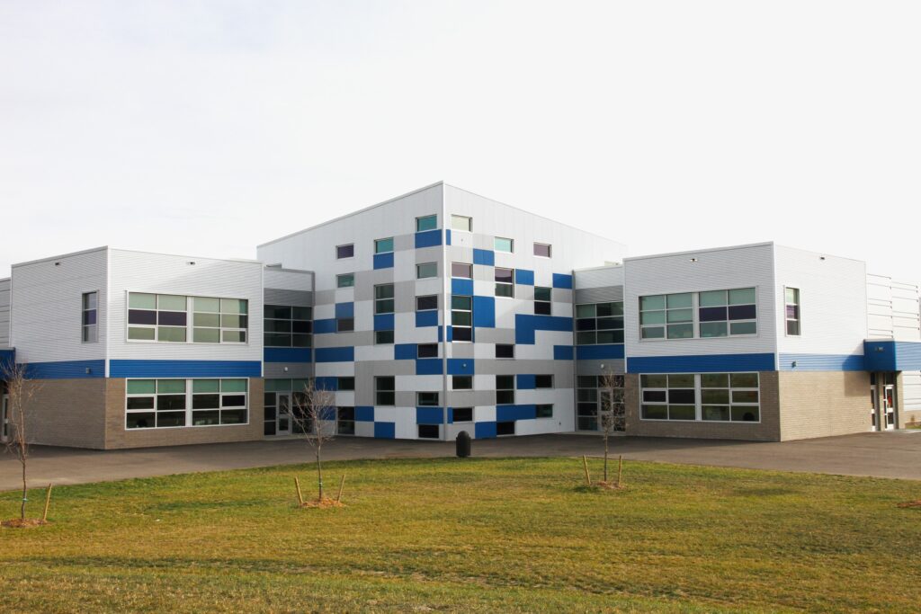 The library, Practical and Applied Arts space, band rooms, and a childcare centre are shared between École Centennial School and All Saints Catholic School.