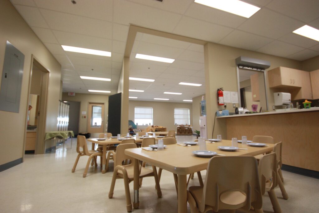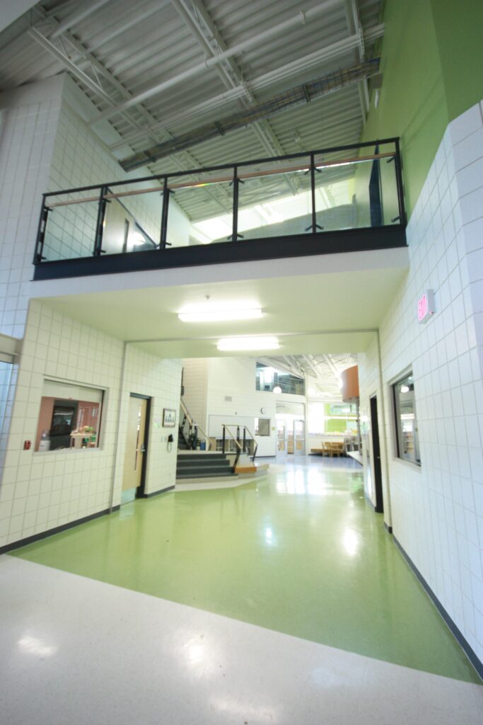 Designed with flexibility in mind, the building can be partitioned so the gymnasium, multi-purpose/servery area, library, and daycare centre can be accessed without requiring access to the rest of the school.