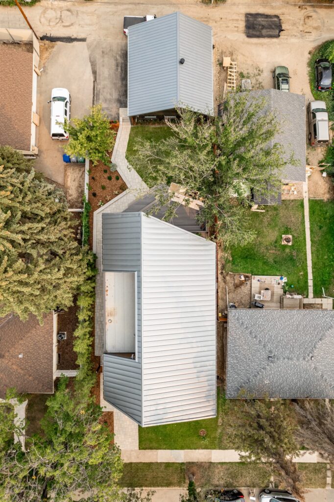 Nestled within Saskatoon’s historic City Park neighborhood, this expansive single-family infill bungalow is located just one block away from the river weir. The property offers a captivating westward view of Wilson Park, while its lush landscape is adorned with mature and irreplaceable trees that played a significant role in the planning process.