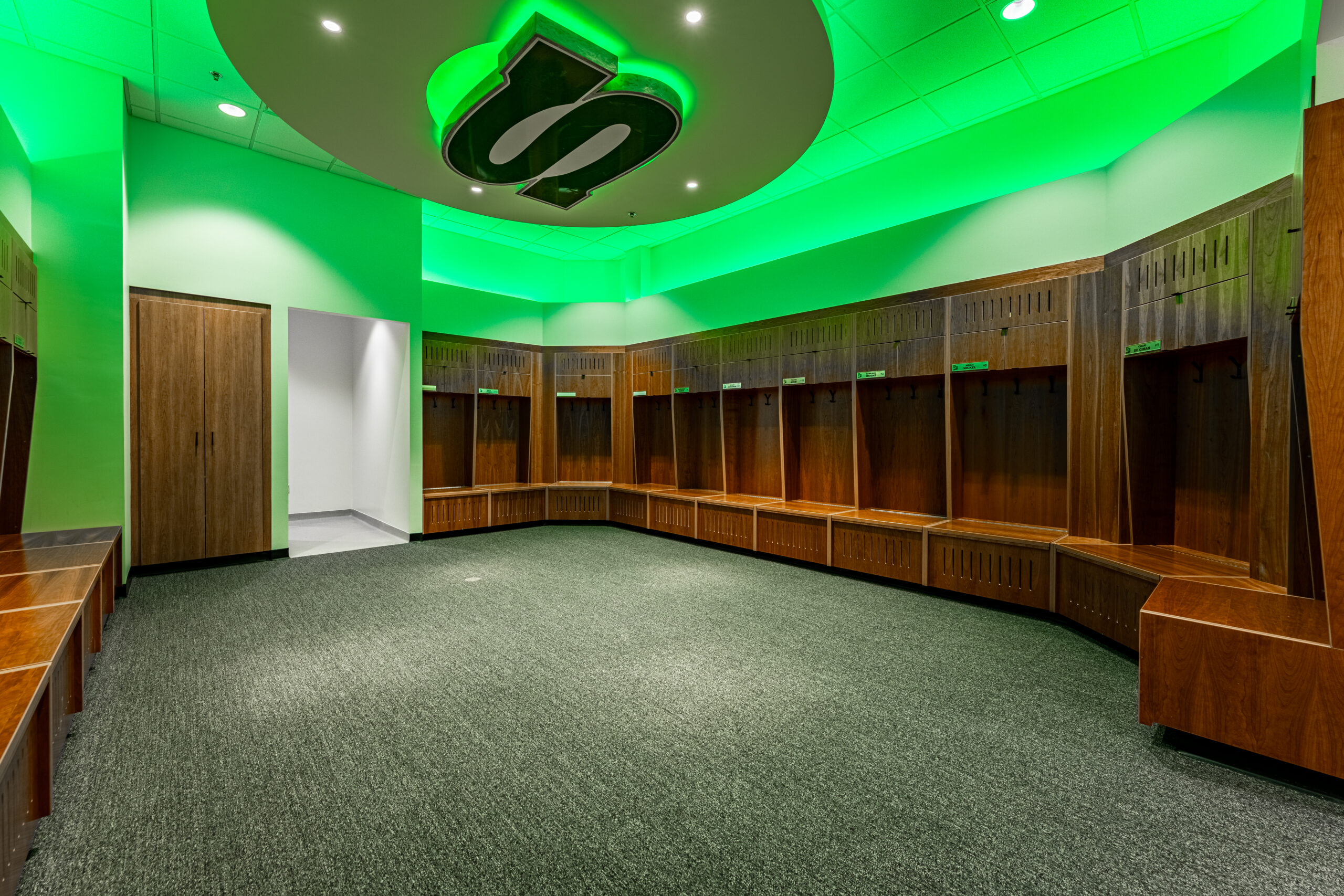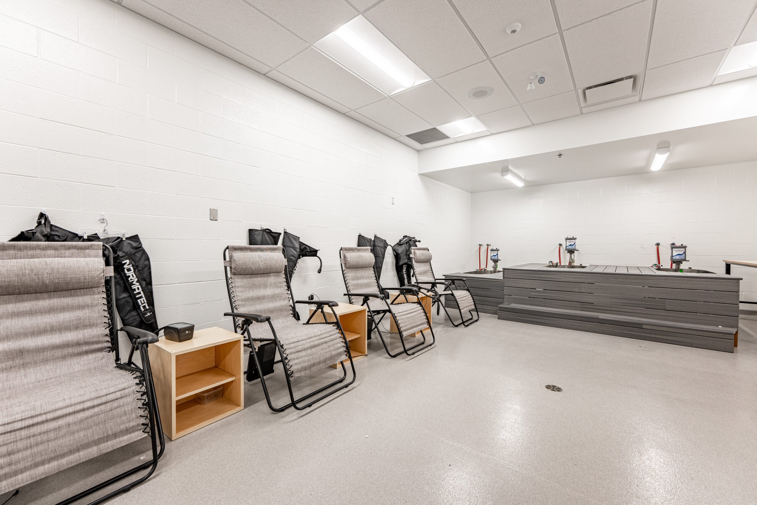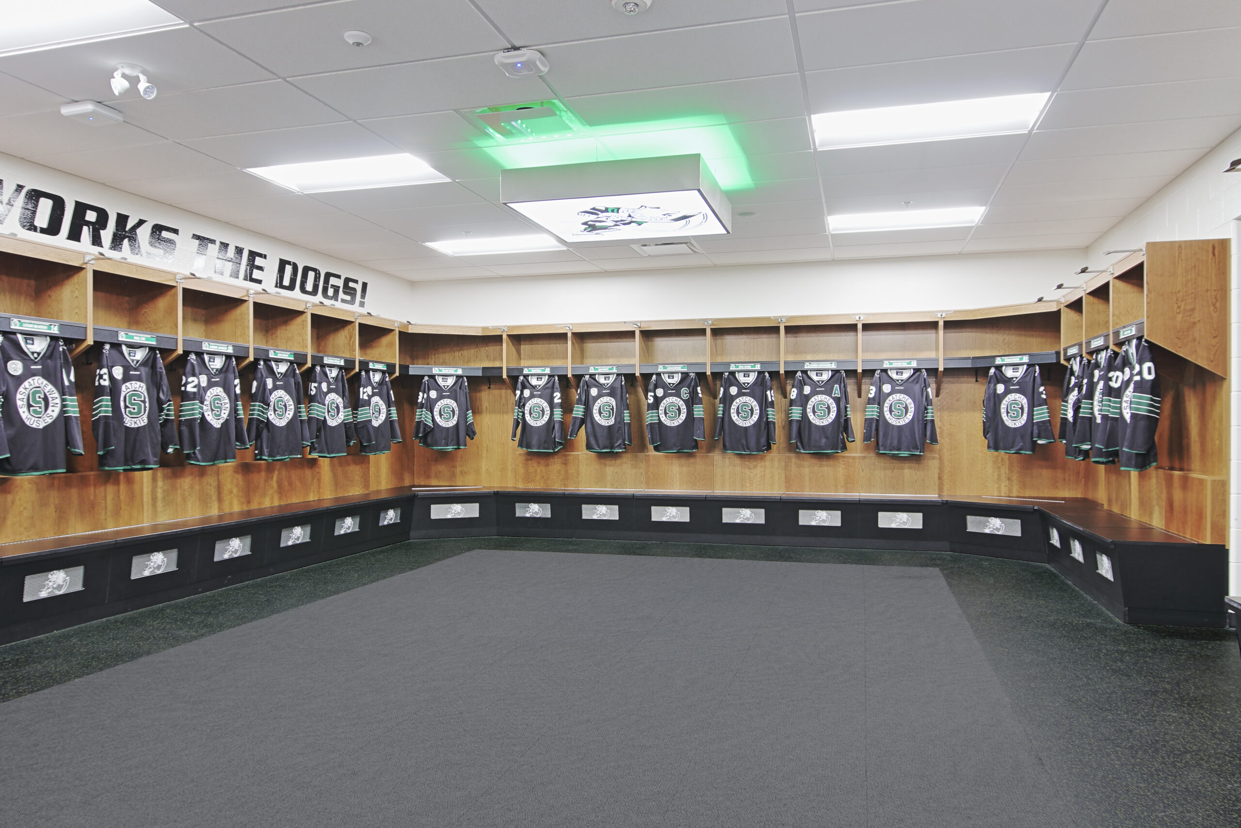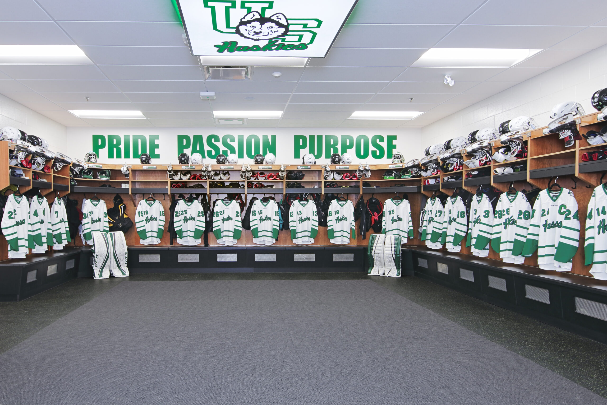 The sports facility features two ice rinks that are designed for year-round use. The Main Spectator Rink is a hybrid dimension (200’ x 90’) that is 5’ wider than a standard NHL rink (200’ x 85’). The spectator rink has a seating capacity of 2,700 with the ability for future expansion to 3,200 spectators and can also be used for concerts, community events, and other spectator events. The main spectator rink features the Huskie hockey men’s and women’s suites, team facilities as well as the Huskie soccer men’s and women’s dressing rooms along with space designated for Campus Recreation. The Community Rink is a 200-seat NHL-sized arena that houses dedicated dressing rooms for the U18 AAA teams as well as 12 additional spacious dressing rooms for minor hockey and campus recreation teams.