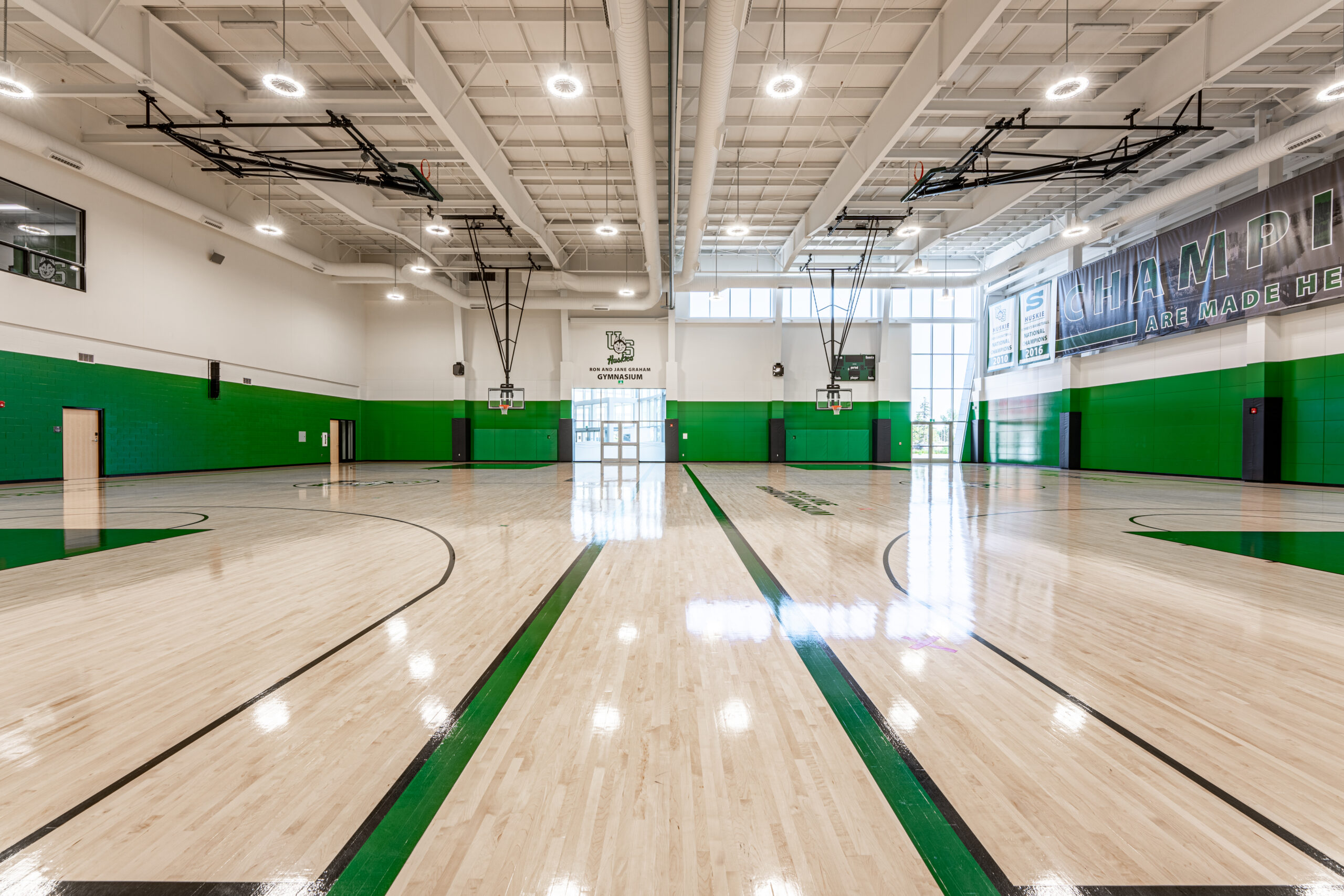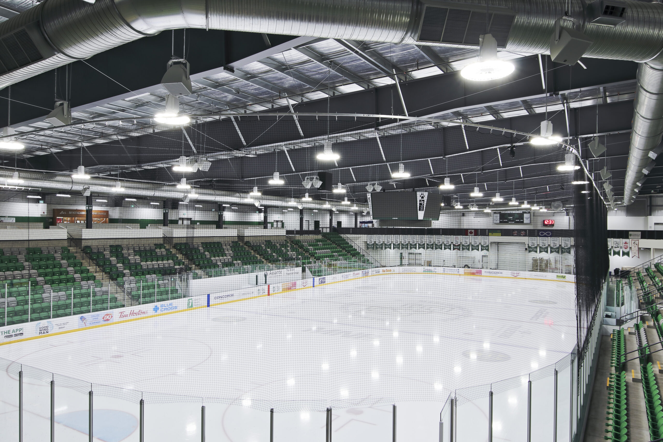 The building design incorporates local materials and finishes to suit campus guidelines and adjacent developments. The building utilizes in-floor heating which is integrated into the ice plant to capitalize on the excess heat generated which is then used to support heating for the facility.