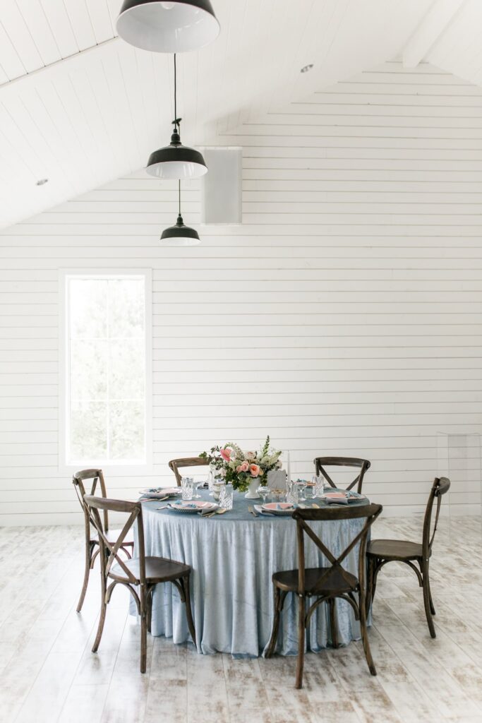 Architecturally, the Barn at Wind’s Edge blends the character of prairie buildings with modern event space. The main building features vertical cedar cladding that undergoes a natural aging process, providing a neutral backdrop to the surrounding natural landscapes. In contrast, the attached ceremonial and meeting space uses white board and batten siding, reminiscent of prairie churches. Large windows flood the interior with natural daylight, connecting guests to the expansive prairies.