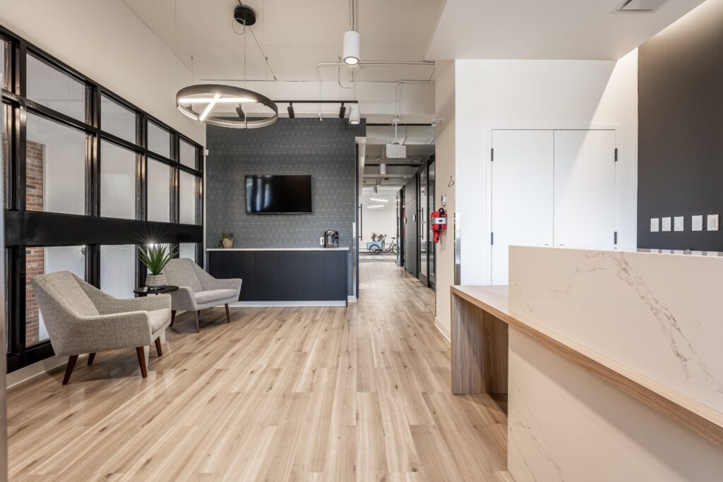In 2021, the team at Urban Systems engaged aodbt again to design a new, larger office space for them in the heart of downtown Saskatoon. Through engagement with the core team, our team was able to learn more about what their office culture looks like in a post pandemic work environment and sought ways to create an inviting office space for both employee retention and recruitment.